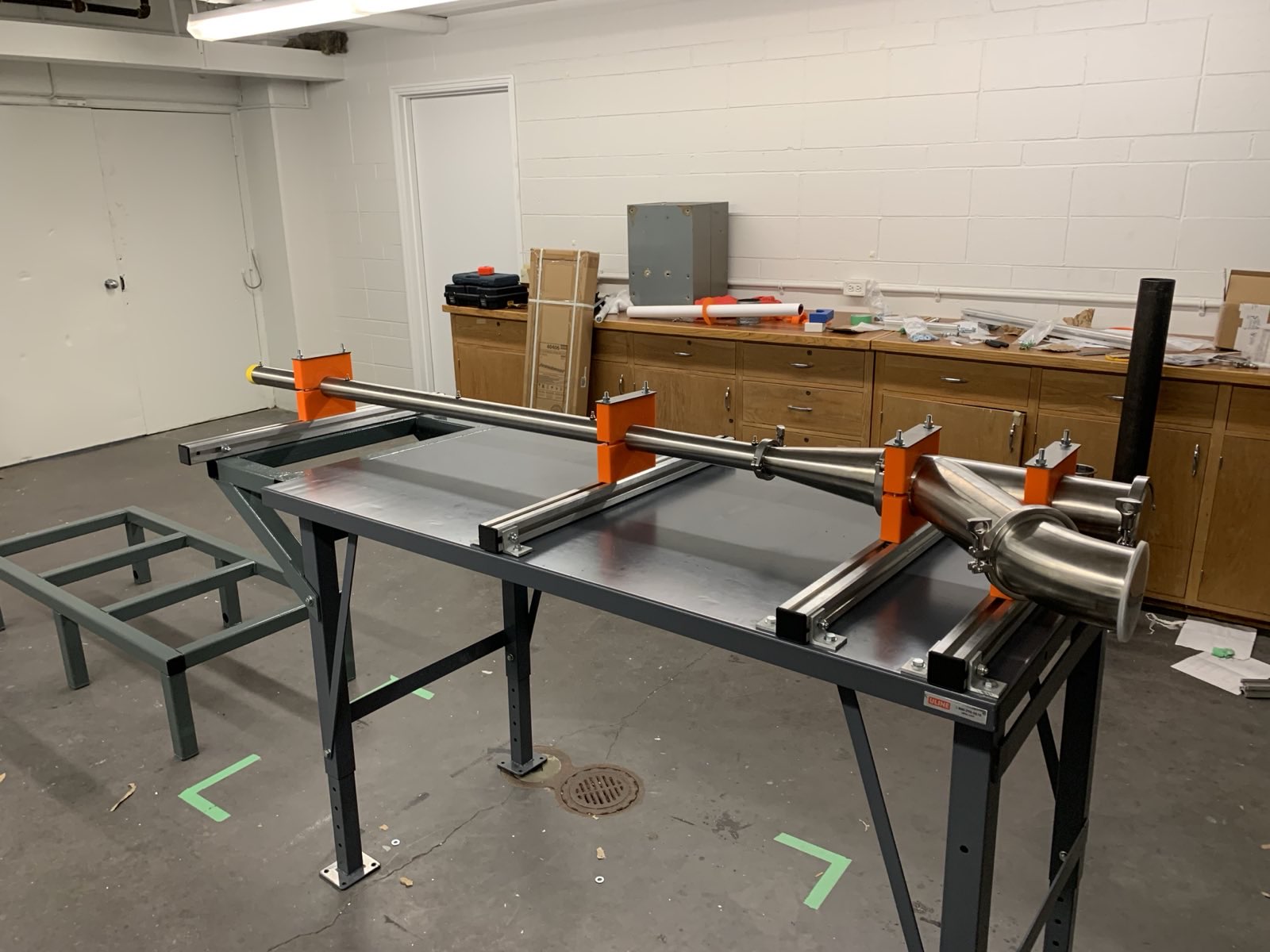 The clamps were mounted to a table that we managed to acquire from another lab that was in the process of downsizing. I had to wheel the table across campus to get it to the new lab space.